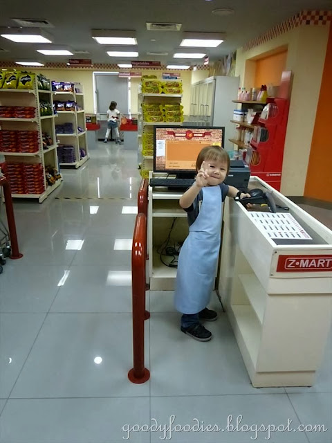 Our kids favorite stop was the Z-Mart aka KidZania's supermarket. Since there were no other kids in there, our kids took turns to become the shopper and cashier. They obviously loved it - some of the things they get to do is scanning barcodes or shopping according to a list given, and at the end of it all, they get paid for doing the job properly. When they received their first salary, their faces look so happy and proud!