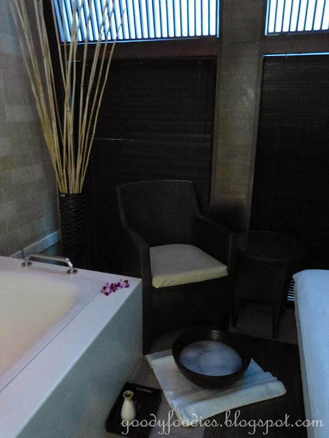 In the modern spa cabanas, soft music plays in the background. We are first given a foot bath before the massage commences. The massage consists of mainly long strokes and deep tissue massage. The therapist worked a good 30 minutes on my back as requested. It was both relaxing and rejuvenating, exactly what we needed after a long, busy week.